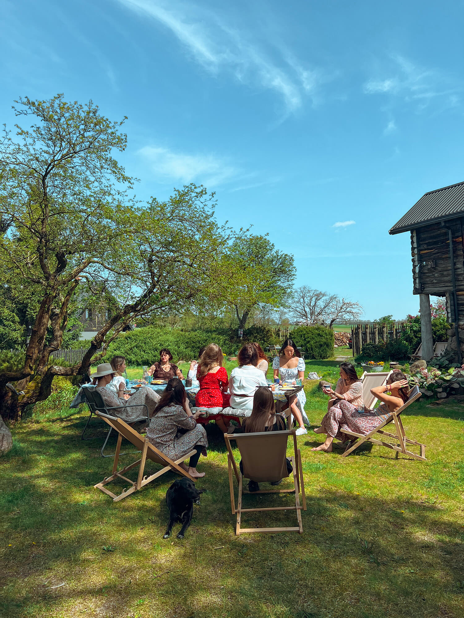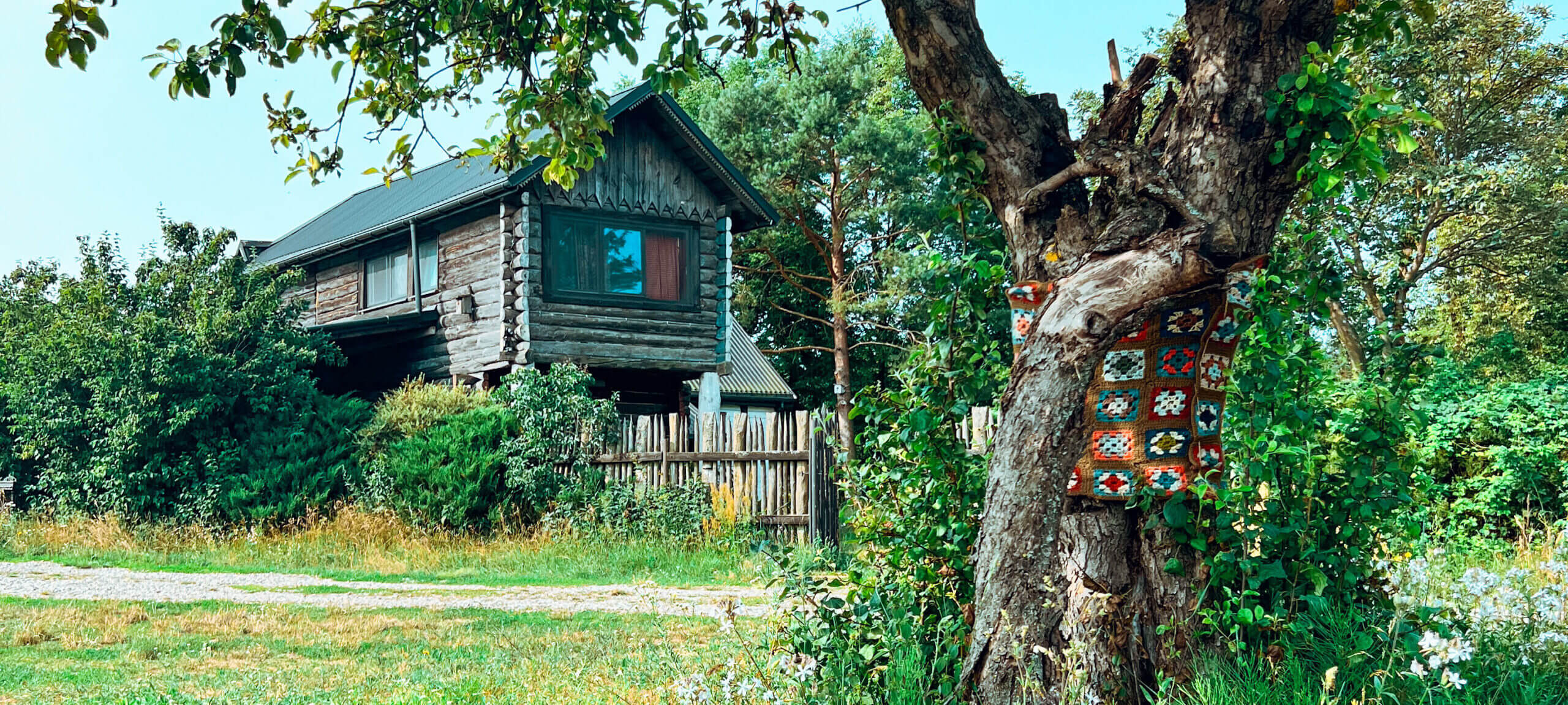 Duży teren zaprasza do przeróżnych aktywności na zewnątrz. Jest trawa, leżaki, grill, miejsce na ognisko, sztalugi do malowania, planszówki, rakietki do badmintona. Można tańczyć, pracować, wylegiwać się, medytować, bawić i robić to, do czego wzywa dusza. W ogrodzie porozstawiane są także rzeźby Henryka Musiałowicza, które razem z bujną naturą tworzą wyjątkową scenerię. Latem kwitnie tu dużo kwiatów, a pośród traw przelatuje mnóstwo motyli. Można spędzić dzień na podziwianiu wspaniałego życia, które się tu wydarza.
