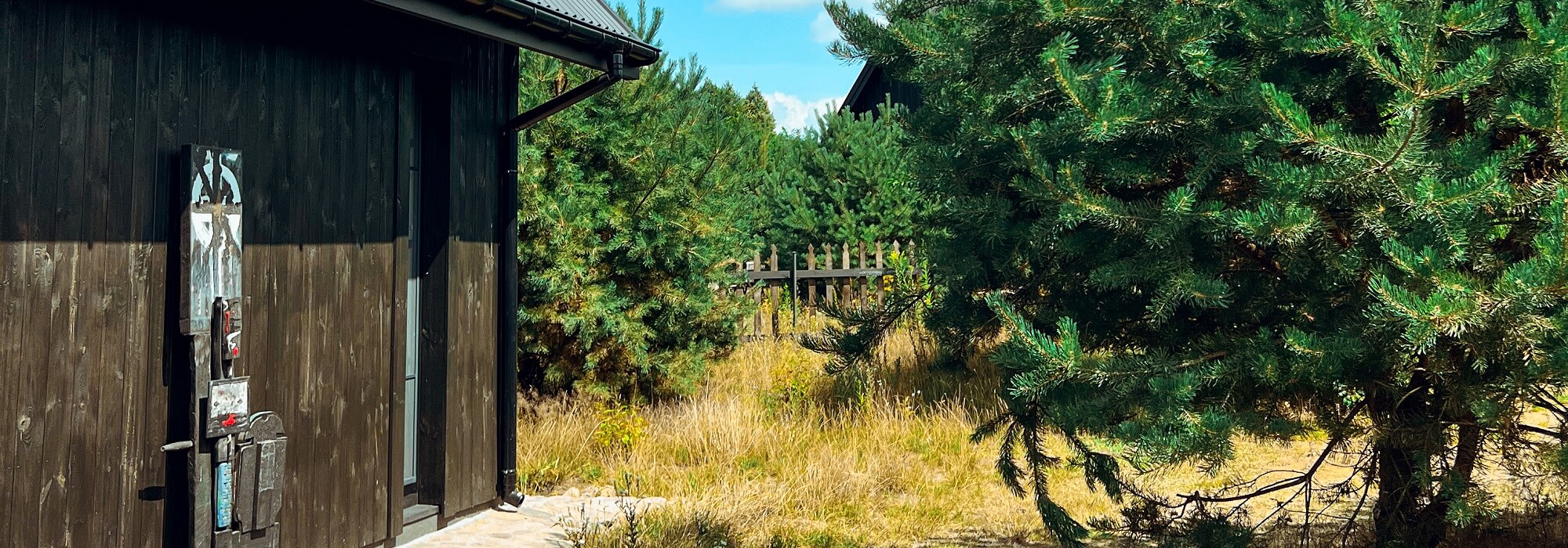 Domki z Wyobraźni znajdują się na skraju terenu, zatopione w zieleni. Z ich tarasów rozpościera się widok na pola, łąki i las, a dokładnie Puszczę Białą. To idealne miejsce na weekendowy wyjazd za miasto, by odpocząć w ciszy i otoczeniu natury. O poranku można słuchać śpiewu ptaków, obserwować podchodzące do płotu sarny, a czasem nawet łosie, zaś wieczorem podziwiać piękne zachody słońca i nasłuchiwać stukotu koziołków. Domki znajdują się zaledwie godzinę od Warszawy, ale są ostoją zieleni i spokoju. Szukasz miejsca do pracy zdalnej? Mimo, że domki znajdują się w sercu mazowieckiej wsi, znajdziesz w nich szybki internet światłowodowy. Choć my polecamy cyfrowy detoks i cieszenie się okolicznościami natury.