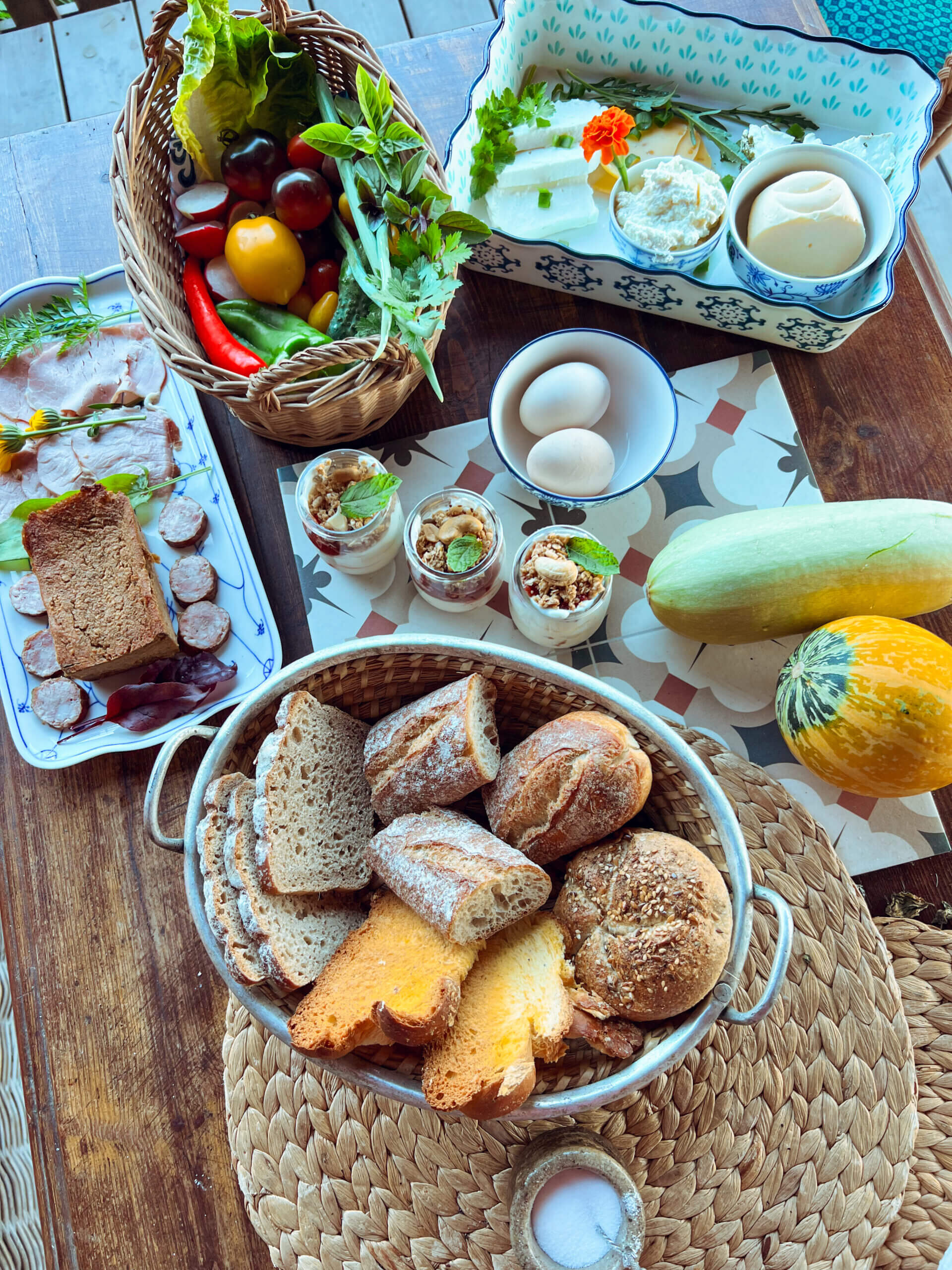 Jeśli macie ochotę wstać, jak to mówią, na gotowe, proponujemy Wam nasze kosze śniadaniowe. Serwujemy w nich produkty od lokalnych rolników i rzemieślników. Świeże pieczywo, swojskie wędliny, sery kozie i krowie, wiejskie jajka od szczęśliwych kur, domową granolę oraz warzywa i zioła z ogródka. Śniadania zmieniają się zgodnie z sezonową dostępnością produktów. Mamy też możliwość przygotowania śniadań wegetariańskich na życzenie. Zamówienia należy złożyć z wyprzedzeniem z uwagi na aspekt organizacyjny.
